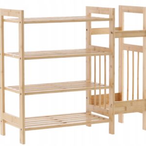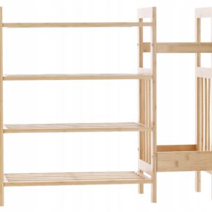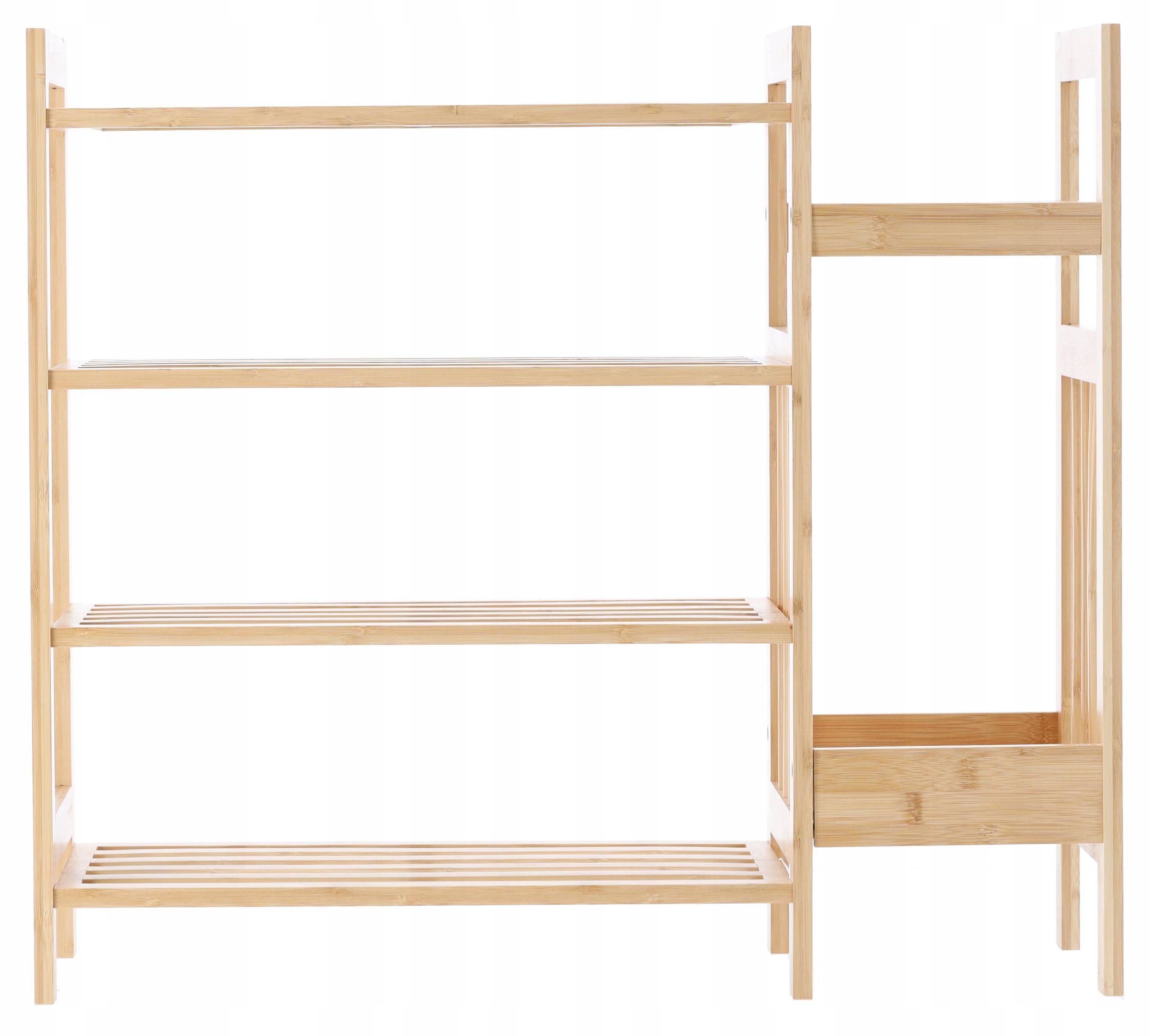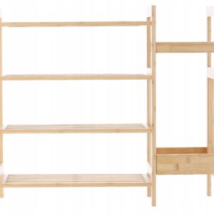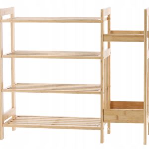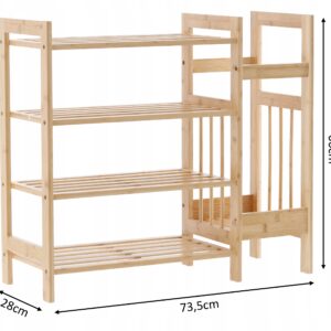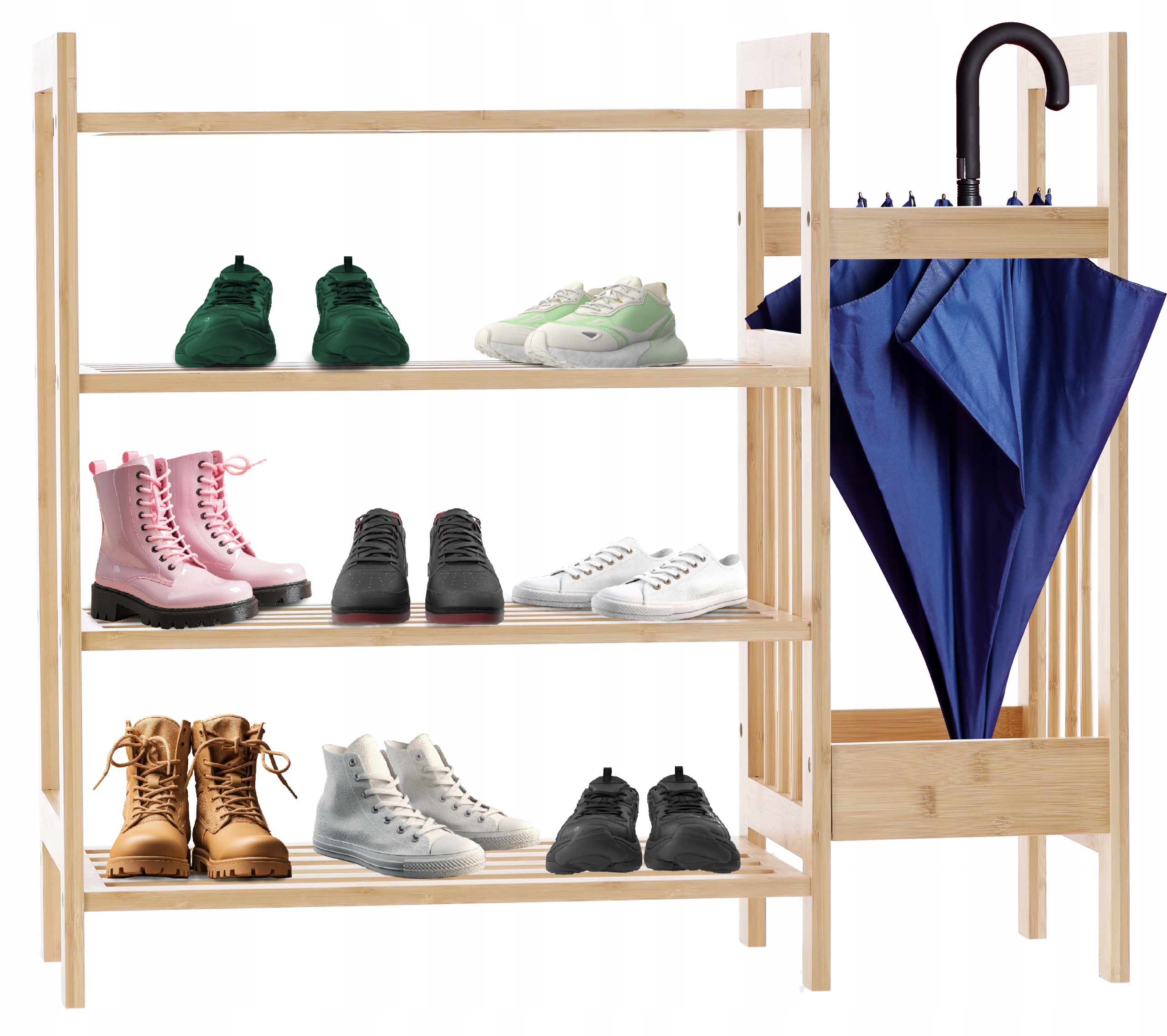 A kiváló minőségű bambuszból készült polc tartós, nedvességálló és természetes, meleg megjelenést kölcsönöz a belső térnek. 4 szintje van, amely lehetővé teszi több pár cipő tárolását méretüktől függően.  Kiegészítő oldalsó polc az esernyőkhöz: