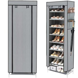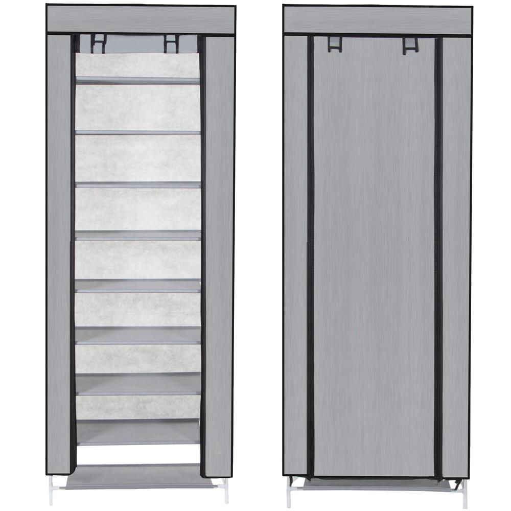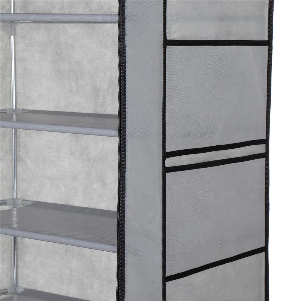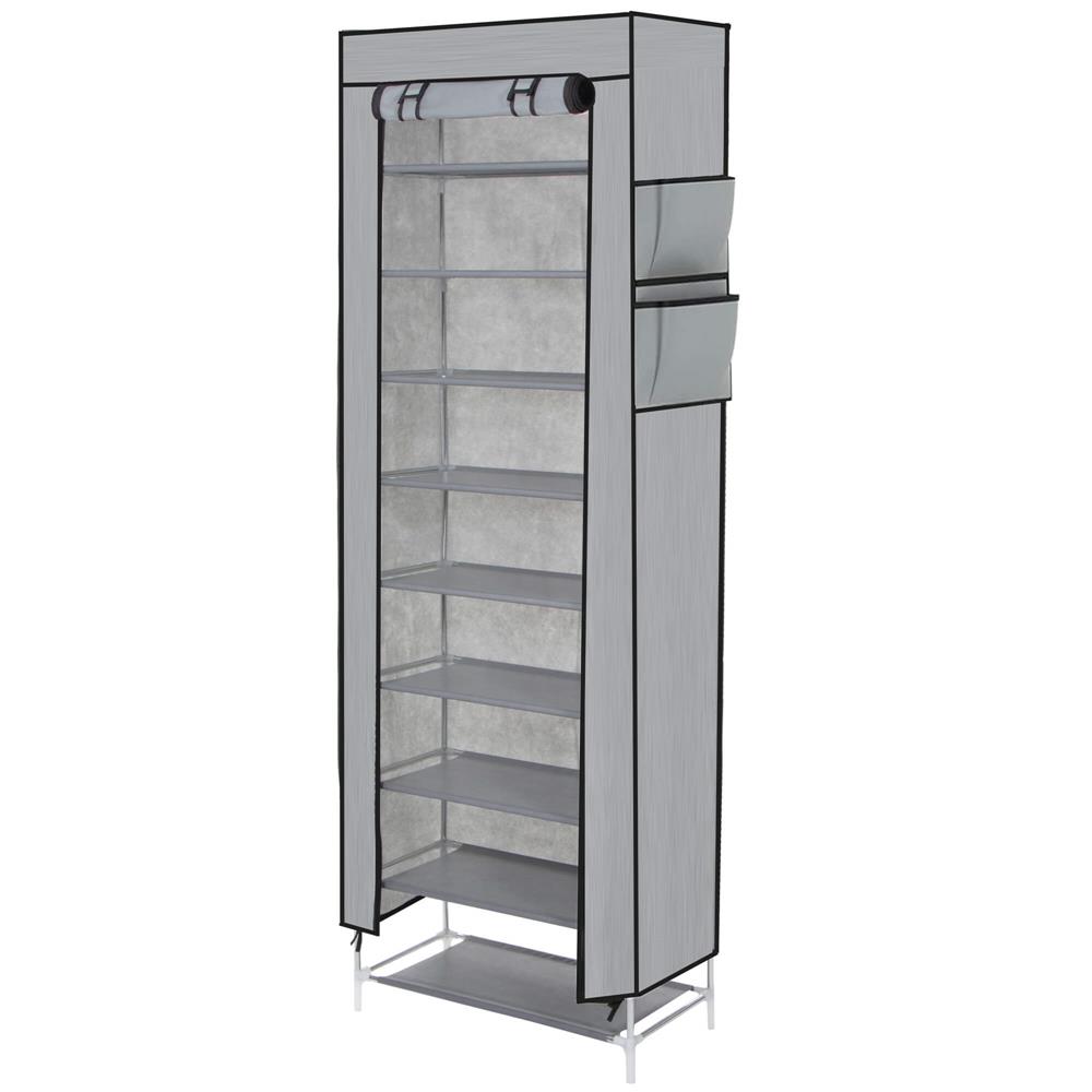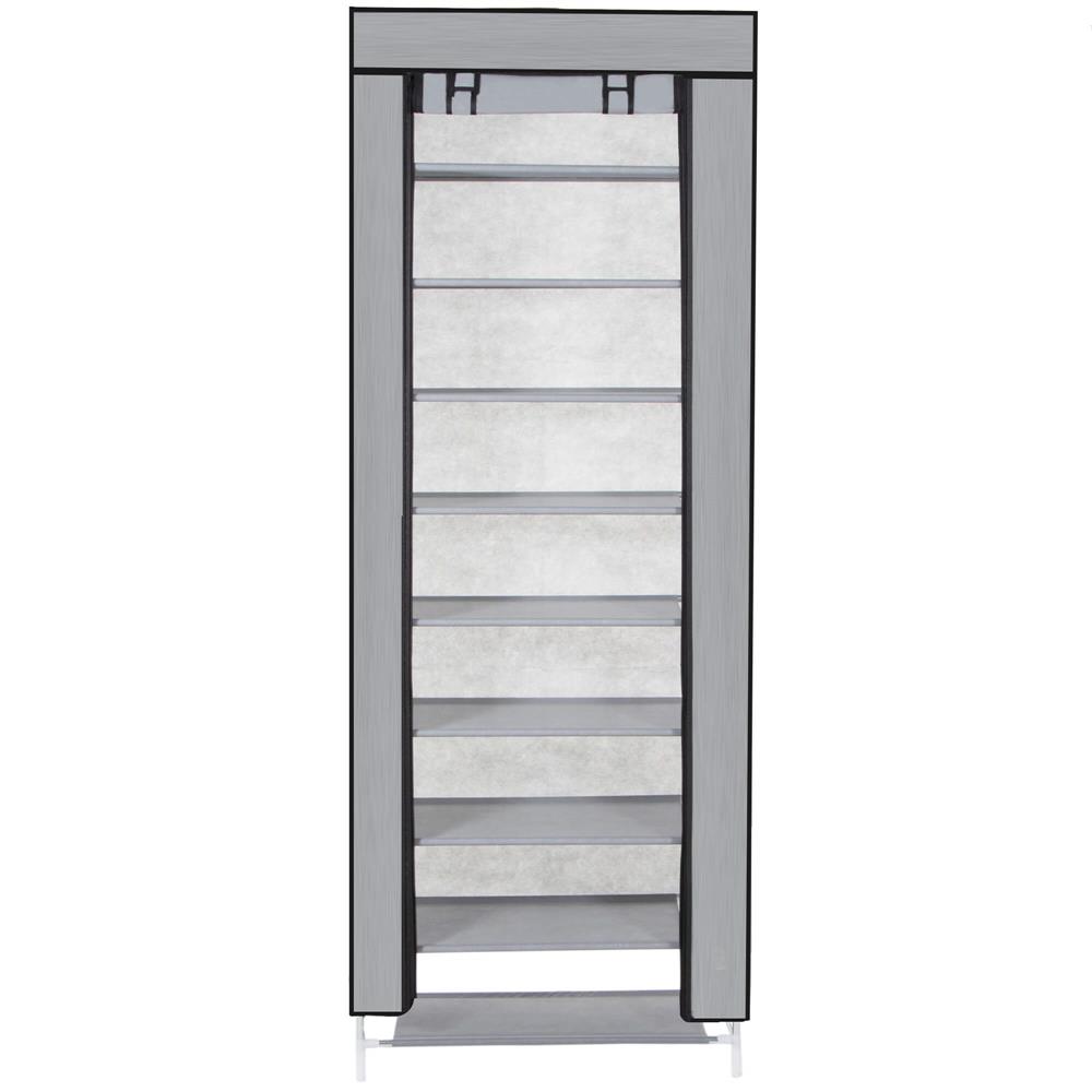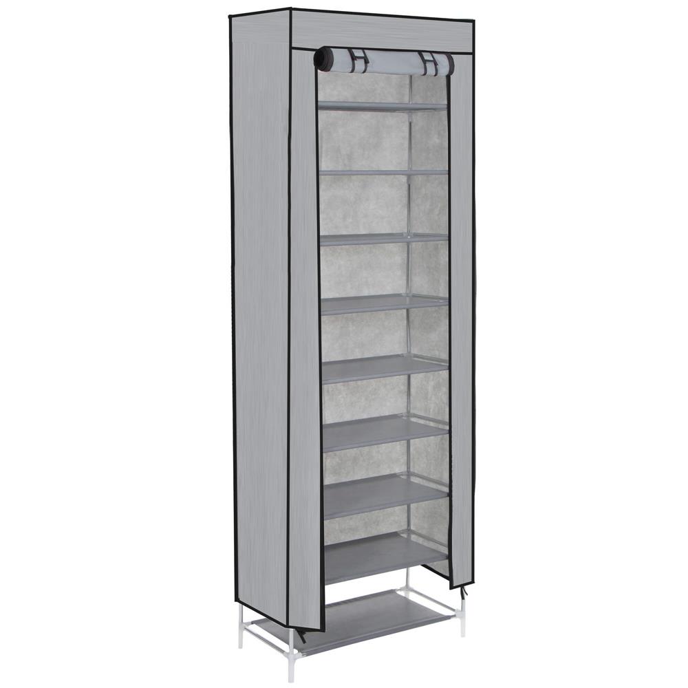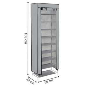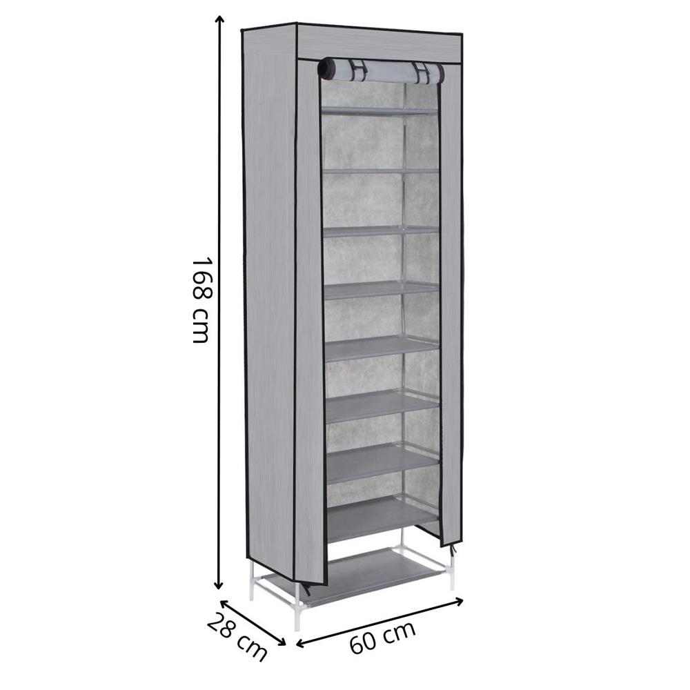 Textil cipőtartó, hordozható, polcokkal, 60x28x168cm, szürke
