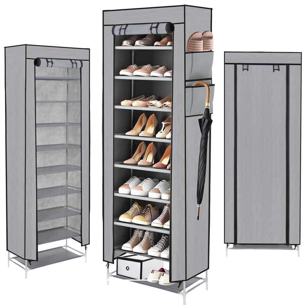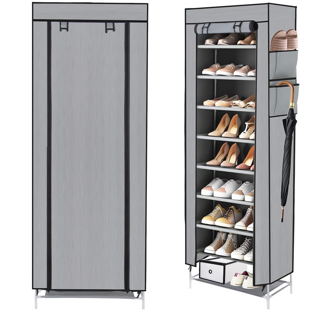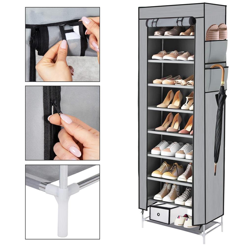 A cipőtartó masszív anyagból készült, pótolhatatlan megoldás mindazok számára, akik értékelik a rendet és az eleganciát a cipőtárolásban. A maximális funkcionalitásra tervezett rack akár kilenc szintet kínál, így elegendő helyet biztosít a cipők kompakt helyen történő tárolására. A textil huzat megóvja a cipőt a portól és a fénytől, ami különösen fontos lehet kényes anyagoknál vagy alkalmanként használt cipőknél.