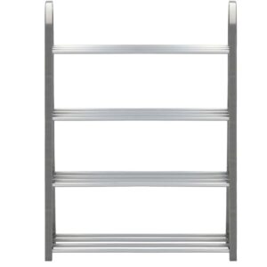 Raftul pentru pantofi, realizat din metal solid, este un must-have pentru oricine pretuieste ordinea si eleganta in depozitarea pantofilor. Proiectat pentru o functionalitate maxima, acest raft metalic ofera pana la patru niveluri, ceea ce asigura suficient spatiu pentru a depozita pantofii intr-un loc compact.