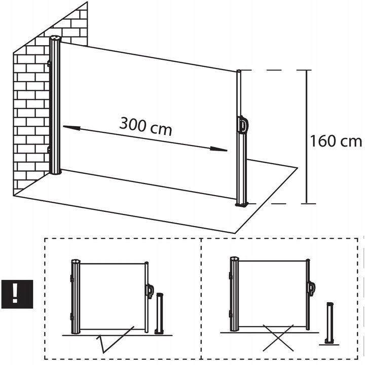A támasz kívánt helyzetbe történő felszerelésének lehetősége lehetővé teszi, hogy a napellenző hosszát egyszerűen az Ön igényei szerint állítsa be. A napellenző maximális hossza 300 cm, így függetlenül attól, hogy erkélyről, teraszról vagy kertről van szó, könnyedén lefedhet egy kényelmes felületet.