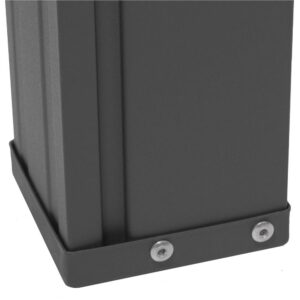 A kerete tömör acélból készült, amely ellenáll a változó időjárási viszonyoknak. Ezenkívül a porszórt bevonat védelmet biztosít a rozsda és a gyors korrózió ellen. A váz masszív felépítésének köszönhetően a napellenző stabilitást biztosít, ami biztonságos használatot tesz lehetővé.