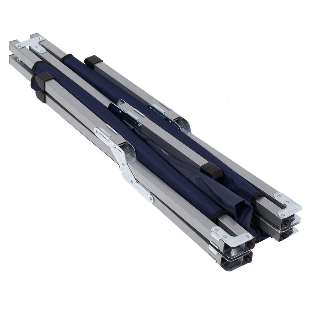 A kempingágyunk robusztus fémvázzal, vastag szerkezeti csövekkel rendelkezik, amely terepviszonyoktól függetlenül garantálja a stabilitást és az ellenállást. Biztos lehet benne, hogy biztonságban és stabilan érzi magát majd alvás közben. A kinyitható ágy végein található keresztrúdnak köszönhetően a napellenző feszített marad, és nem kell attól tartania, hogy az ágy véletlenül kinyílik. Ez a kiegészítő biztonsági funkció nyugalmat biztosít, hogy az ágy összecsukva marad, amíg másképp nem dönt.