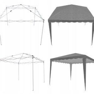 Pavilion de gradina fabricat din polietilena de buna calitate, rezistent la apa si este foarte usor de asamblat. Pentru montare trebuie sa va asigurati ca aveti puncte solide de sprijin. Pentru ca acest cort sa reziste bine, solul trebuie sa fie plan si solid.