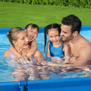 Este un material întărit cu 3 straturi, format din PVC laminat foarte rezistent și o plasă de poliester, ceea ce face ca pereții laterali să fie foarte groși, oferind rezistență și durabilitate superioară. Această piscină supraterană are un cadru din oțel rezistent la coroziune. Datorită supapei de scurgere încorporate pentru controlul debitului, este ușor să evacuați apa. Piscina supraterană poate fi instalată rapid și simplu. Pur și simplu, așezați piscina pe o suprafață plană, instalați tot cadrul și umpleți piscina cu apă. Piscina se poate plia ușor pentru depozitare și transport.