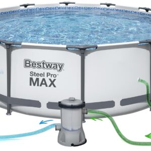 Piscina marca Bestway pe un cadru stabil si din otel inoxidabil este o alegere excelenta daca sunteti in cautarea unei piscine robuste, care va rezista familiei dvs. timp de mai multe sezoane de vacanta. Are suficient spatiu pentru a gazdui mai multi copii si adulti. Pentru confortul dumneavoastra, Bestway a inclus o pompa de filtrare puternica impreuna cu aceasta piscina. Piscina are un fund confortabil si pereti laterali rezistenti, suficient de moi pentru a servi drept spatar confortabil. Piscina cu cadru Bestway este fabricata din PVC in trei straturi – cel mai utilizat material in prezent in fabricarea piscinelor de gradina, datorita rezistentei si durabilitatii sale. Acest lucru il face foarte rezistent la intepaturi si abraziuni. Piscina de gradina prezentata se distinge prin constructia sa stabila, sustinuta de un cadru din otel inoxidabil si puternic. In plus, este usor de montat, astfel incat nu este nevoie decat de cateva minute pentru a va bucura de o baie alaturi de cei dragi.