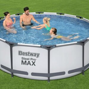 Piscina cu cadru Bestway are o grafica clasica, atemporala. Forma si designul sau vor fi cu siguranta pe placul intregii familii si al oaspetilor si vor arata minunat pe fondul verde din gradina dvs. Prin urmare, daca aveti un pic de spatiu liber – nu ezitati sa cumparati!