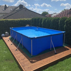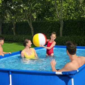 Piscina Steel Pro Max Bestway, cu pompa de filtrare inclusa, este o piscina de gradina cu cadru metalic, supraterana, care poate fi asamblata fara ajutorul unui profesionist. Constructiv este o piscina cu forma dreptunghiulara realizata pe un cadru din otel, galvanizat la cald, acoperit cu vopsea emailata si pereti cu 3 straturi PVC laminat. Amplasata in curte sau gradina se va transforma intr-un refugiu de racoare si relaxare apreciat de toti membrii familiei.