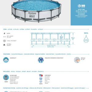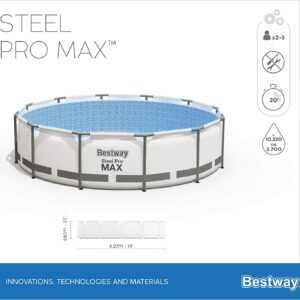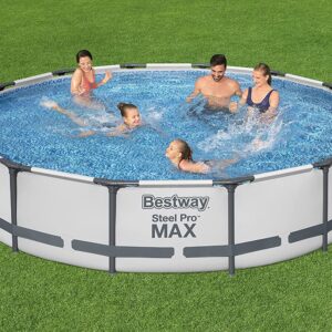 Bestway 56595, piscina supraterana Bestway 56595, va garanta distractie nesfarsita pentru intreaga familie. In piscina mare si rotunda Steel Pro Max™ de la Bestway, toata lumea se poate racori si relaxa in timpul lunilor de vara.