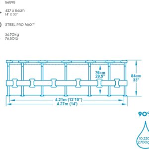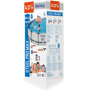 Piscina Steel Pro Max™ Bestway 56595 Steel Pro Max™ dispune de un cadru din tuburi de otel extrem de robust, care, impreuna cu acoperirea sa antirugina, asigura stabilitatea si durabilitatea articolului. Aceasta piscina este fabricata din TriTech™ robust, un material format din 2 straturi de PVC care imbraca o plasa de poliester in interior, cu o folie de PVC rezistenta plasata pe fundul peretilor laterali.