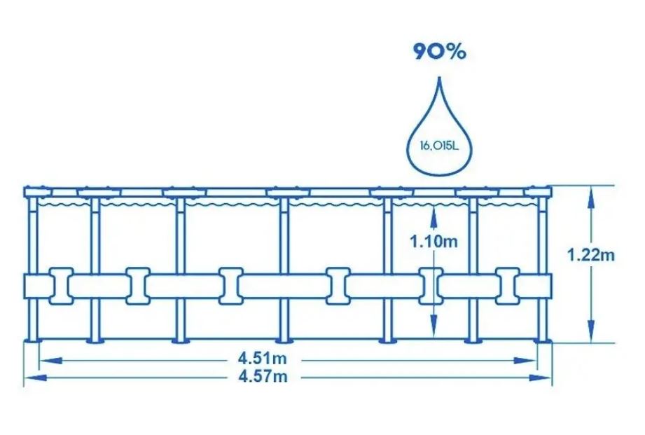 Peretii laterali foarte rezistenti ai acestei piscine sunt construiti cu Tritech™, un material armat in 3 straturi cu un miez de plasa de poliester inglobat intre doua straturi de material PVC de calibru mare. Acest lucru creeaza o grosime totala de 0,40-0,80 mm , in functie de dimensiunea piscinei, oferind rezistenta si durabilitate superioare
