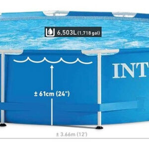 Brandul Intex – instalare usoara, design robust si utilizare pe termen lung, toate acestea sunt oferite de aceasta piscina de lux. Constructia galvanizata cu acoperire cu pulbere asigura o durabilitate ridicata. Aceasta piscina, cu dimensiunile 366 x 76 cm, garanteaza odihna, distractie si buna dispozitie pentru intreaga familie. Peretii laterali sunt fabricati din PVC laminat 3x armat. Datorita constructiei sale, constructia este simpla si rapida. Drenajul este asigurat de o supapa de scurgere