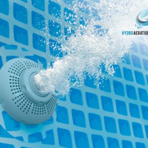 Piscina este echipata cu „Hydro Aeration Technology” – un atasament special creeaza bule care aerisesc apa. Aceasta este o inovatie in purificarea apei din piscina. Amestecarea aerului cu apa determina aerarea sa oxideze fierul si manganul, indepartand astfel impuritatile din apa. . Rezultatul este apa spumanta care arata grozav!
