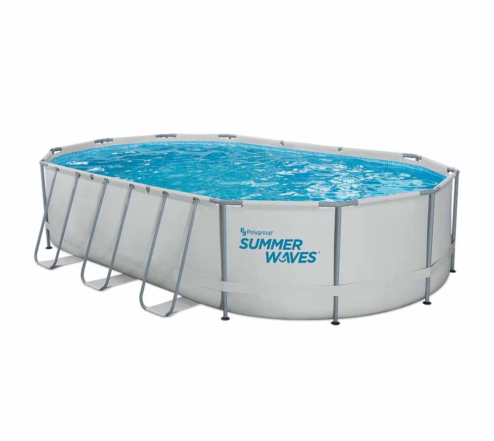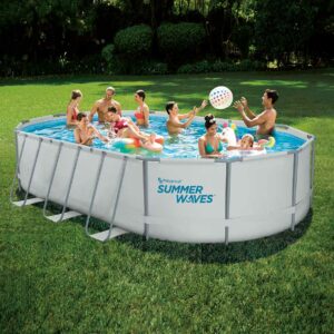 Summer Waves piscina ovala deasupra solului cu structura metalica 610x366x122 cm. Aceasta piscina este configurata in doar 60 de minute si este conceputa pentru a rezista mult timp.