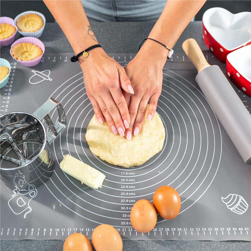 Minden házi szakács pontosan tudja, milyen a fából készült asztallapra tapadt tésztát gyúrni. Szilikon kiegészítőnket választva további megterhelés nélkül készíthet tésztát, galuskát vagy pizzát. A család legkisebb tagjaival könnyedén kivághatsz különböző mintákat mézeskalácsnak vagy süteménynek, és ezek gond nélkül lejönnek a szőnyegről.