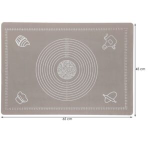 Ez a szilikon sütőalátét ideális konyhába. Az anyag rugalmassága miatt feltekerve nagyon kis helyet foglal, és akár kis fiókban is tárolható.