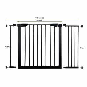 A biztonsági kapu biztonságos és masszív gyermekek vagy kis- és közepes méretű állatok számára. A kapu el tudja választani a ház bizonyos, gyermekeinkre veszélyes területeit. Megvédi a lépcsőket vagy az ajtókat. A kapu speciális csavarokkal van rögzítve, ami rendkívül egyszerűvé és gyorssá teszi a fel- és leszerelést. A beállítás lehetővé teszi, hogy a kaput 75-117 cm szélességű ajtókeretek közé szereljük.