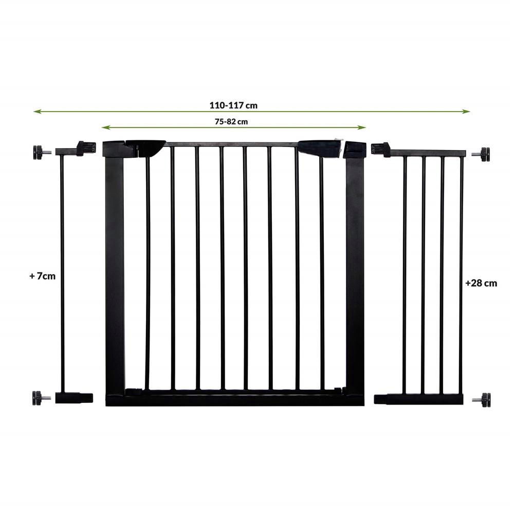 Biztonsági kapu lépcsőhöz, hosszabbító 110-117 cm, acélból, fekete