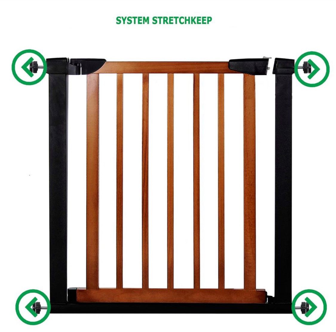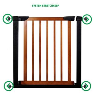 Poarta este sigura si solida pentru copii sau pentru animale de talie mica si medie. Poarta poate separa anumite zone din casa care sunt periculoase pentru copiii nostri. Protejeaza scarile sau usile de intrarea necontrolata a copiilor. Poarta este fixata cu ajutorul unor suruburi speciale, ceea ce face ca montarea si demontarea sa fie extrem de rapida si usoara. Reglarea permite ca poarta sa fie montata intre cadrele usilor cu latimea de 75-124cm.