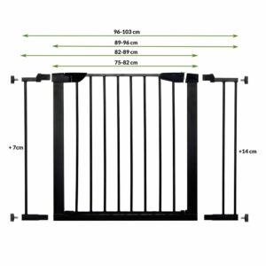 A biztonsági kapu biztonságos és masszív gyermekek vagy kis- és közepes méretű állatok számára. A kapu el tudja választani a ház bizonyos, gyermekeinkre veszélyes területeit. Megvédi a lépcsőket vagy az ajtókat. A kapu speciális csavarokkal van rögzítve, ami rendkívül egyszerűvé és gyorssá teszi a fel- és leszerelést. A beállítás lehetővé teszi, hogy a kaput az ajtókeretek közé szereljük 75-82 cm szélességben.