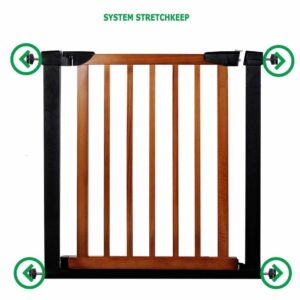 A kapu biztonságos és masszív gyermekek vagy kis- és közepes méretű állatok számára. A kapu el tudja választani a ház bizonyos, gyermekeinkre veszélyes területeit. Megvédi a lépcsőket vagy az ajtókat. A kapu speciális csavarokkal van rögzítve, ami rendkívül gyors és egyszerű fel- és leszerelést tesz lehetővé. Az állítás lehetővé teszi a kapu felszerelését 75-82 cm széles ajtótok közé.