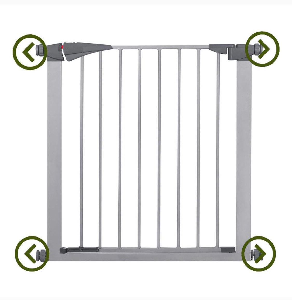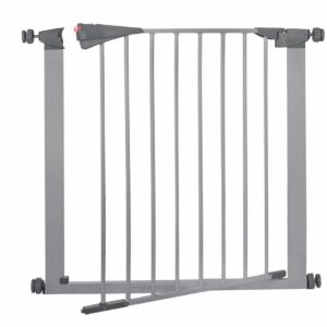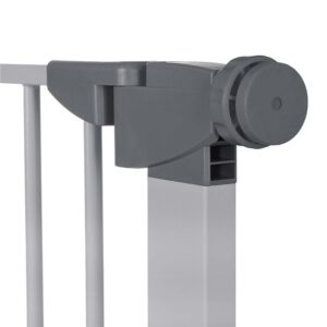 - Margini sigure – elementele folosite la poarta au forme ovale special rotunjite, astfel incat copilul nu va putea sa introduca si sa isi ciupeasca degetele. Designul securizat al balamalei impiedica prinderea degetelor.