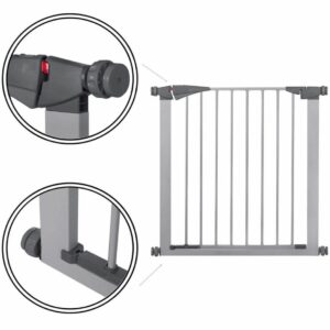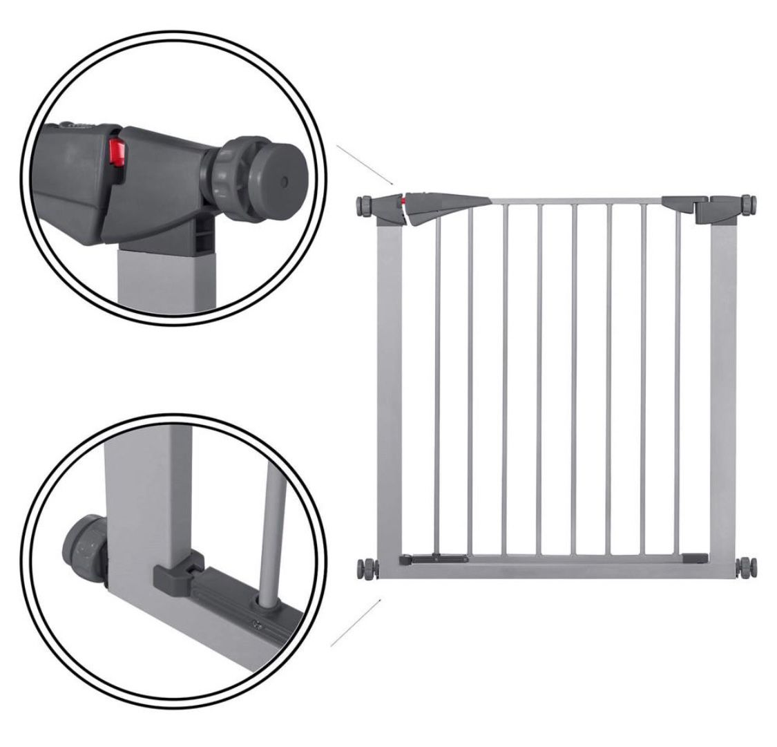 Poarta de siguranta este stabila pentru copii sau pentru animale de talie mica si medie. Poarta poate separa anumite zone din casa care sunt periculoase pentru copiii nostri. Protejeaza scarile sau usile de intrarea necontrolata a copiilor. Poarta este fixata cu ajutorul unor suruburi speciale, ceea ce face ca montarea si demontarea sa fie extrem de usoara si rapida. Reglarea permite ca poarta sa fie montata intre cadrele usilor cu o latime de 79-84 cm.