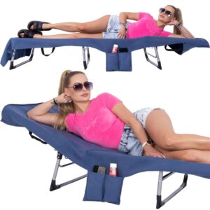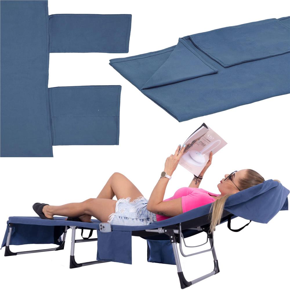 Prosop de plaja pentru sezlong cu uscare de rapida, geanta de transport, 75x210cm, albastru inchis