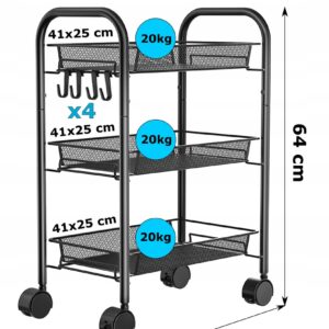 A kerekes mobilpolc ideális megoldás azok számára, akik praktikus és kényelmes módot keresnek a konyhában vagy a fürdőszobában a tárgyak tárolására. Kompakt kialakításának köszönhetően a polc minden térben könnyen megtalálja a helyét, kerekei pedig lehetővé teszik, hogy könnyen mozgatható és az Ön igényeihez igazítható legyen.