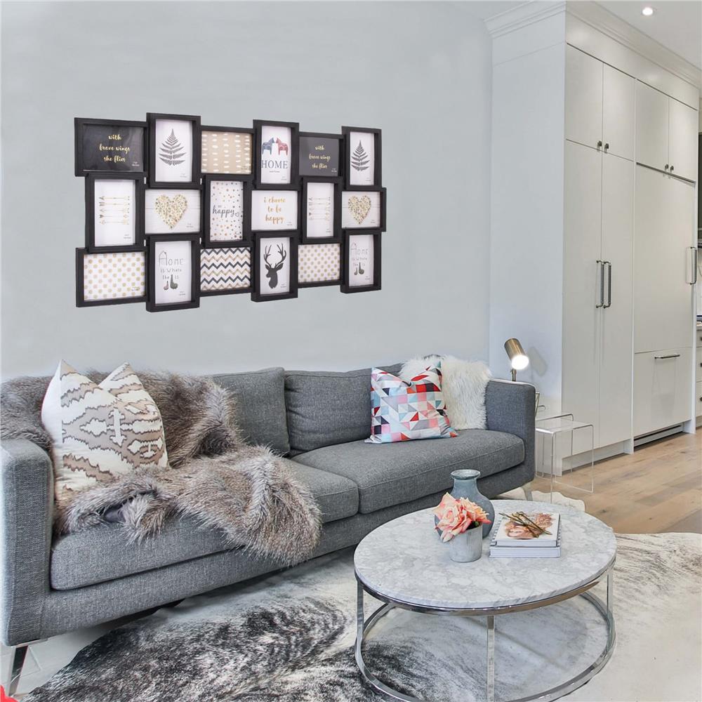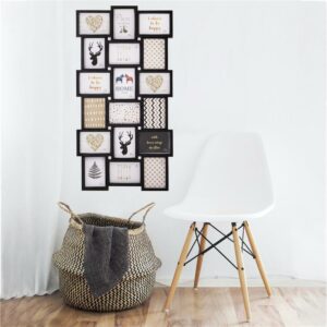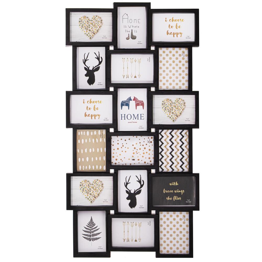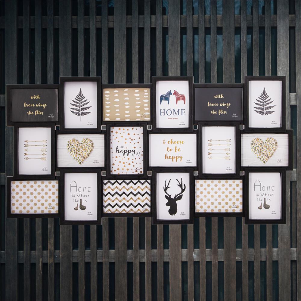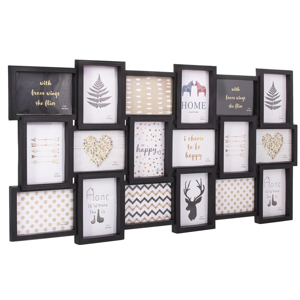 Fali képkeret, 18 fotóból álló kollázs, 52x101cm, fekete