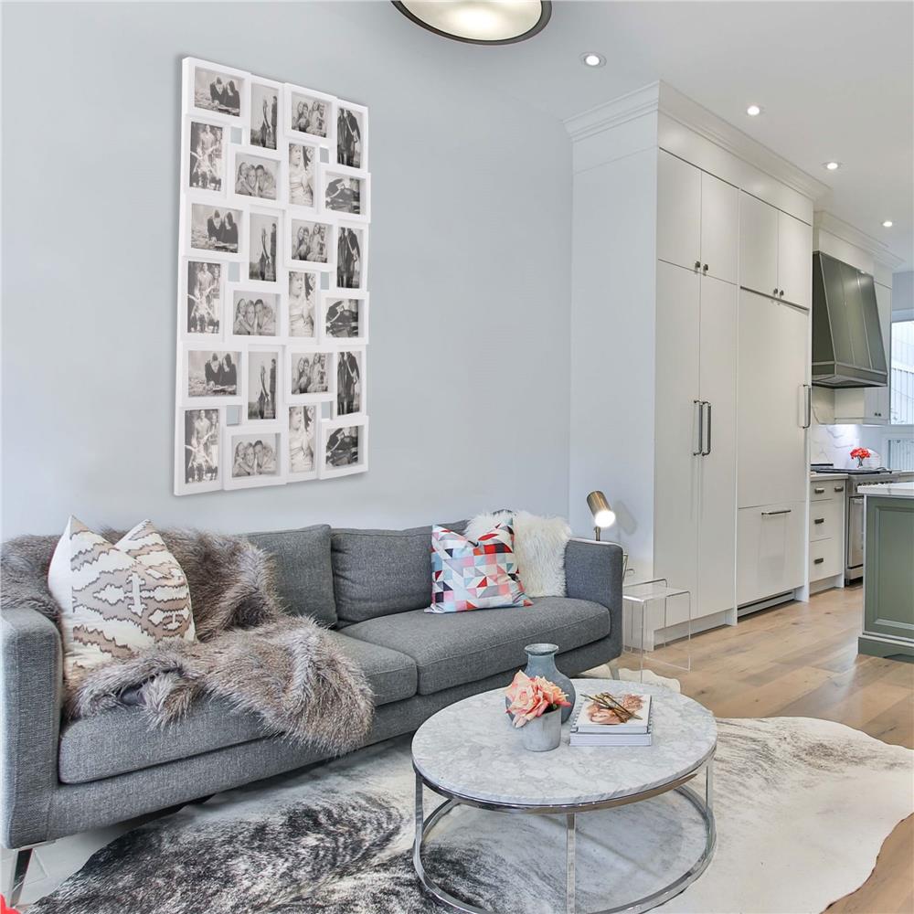 Fali képkeret, 24 fotóból álló kollázs, 57x86cm, fehér