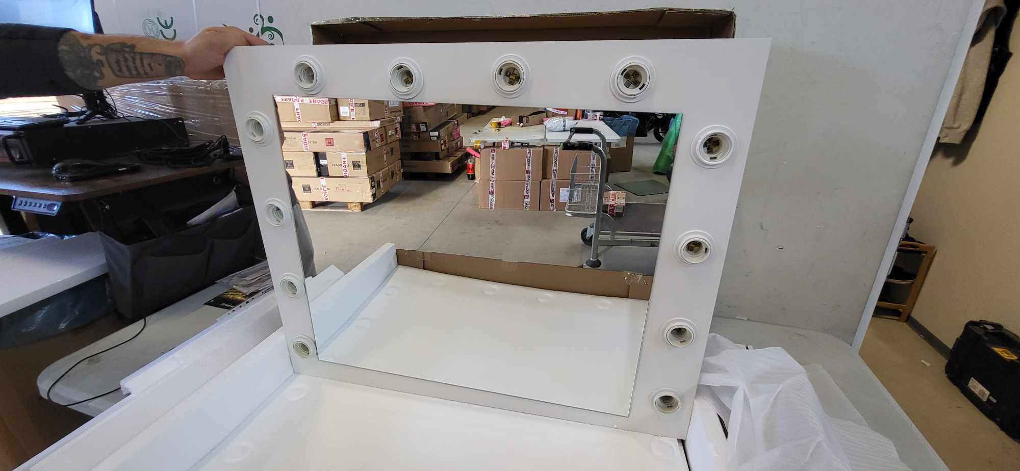 „RESIGILAT: Masa de toaleta si machiaj Hollywood Pro, alba, cu 4 sertare, oglinda si 12 LED-uri, 90x40x140 cm” értékelése elsőként
