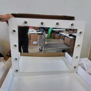 Aceasta masuta de toaleta cu oglinda si iluminare este cu siguranta o idee de cadou excelenta pentru orice femeie. Acesta va gazdui un numar mare de coliere, inele, bratari intr-un sertar incapator. Cele 12 lumini cu leduri adauga farmec si eleganta, iar oglinda exterioara este, dupa cum toata lumea stie, un element indispensabil in orice dormitor.