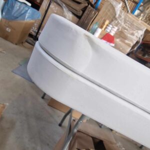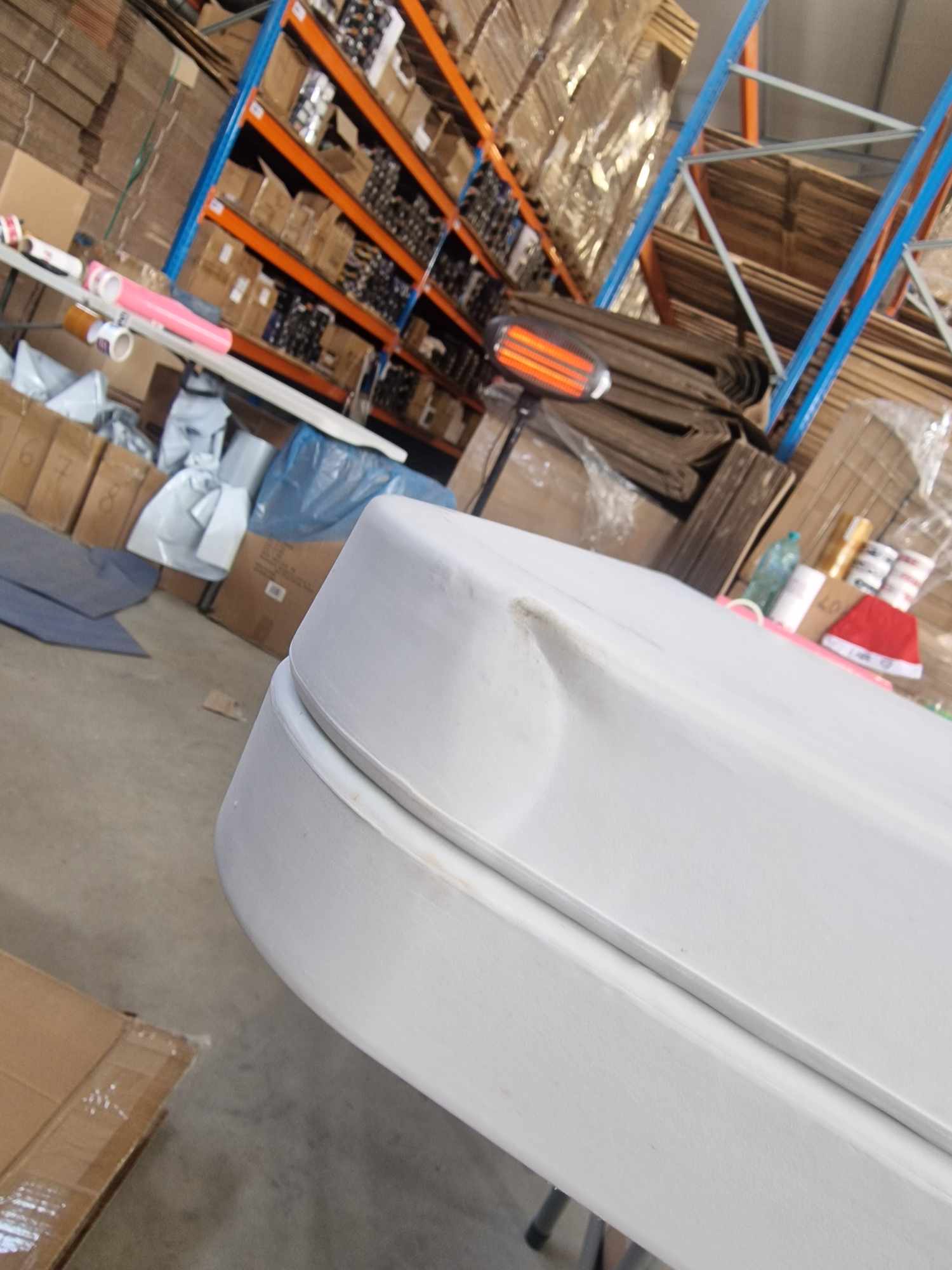Az asztallap vastag, masszív és lekerekített élekkel rendelkezik.
