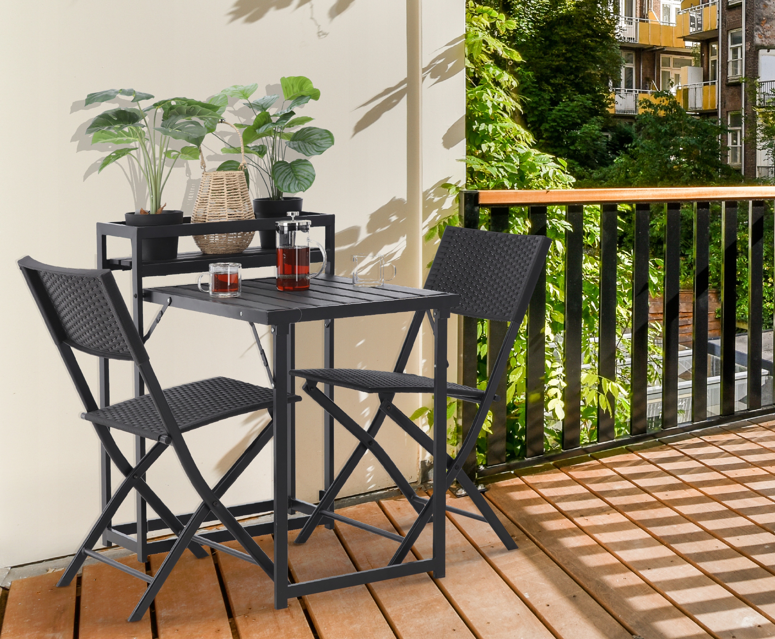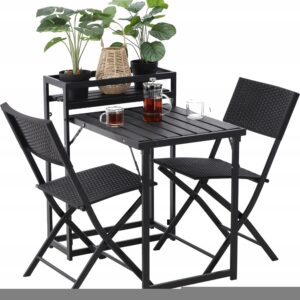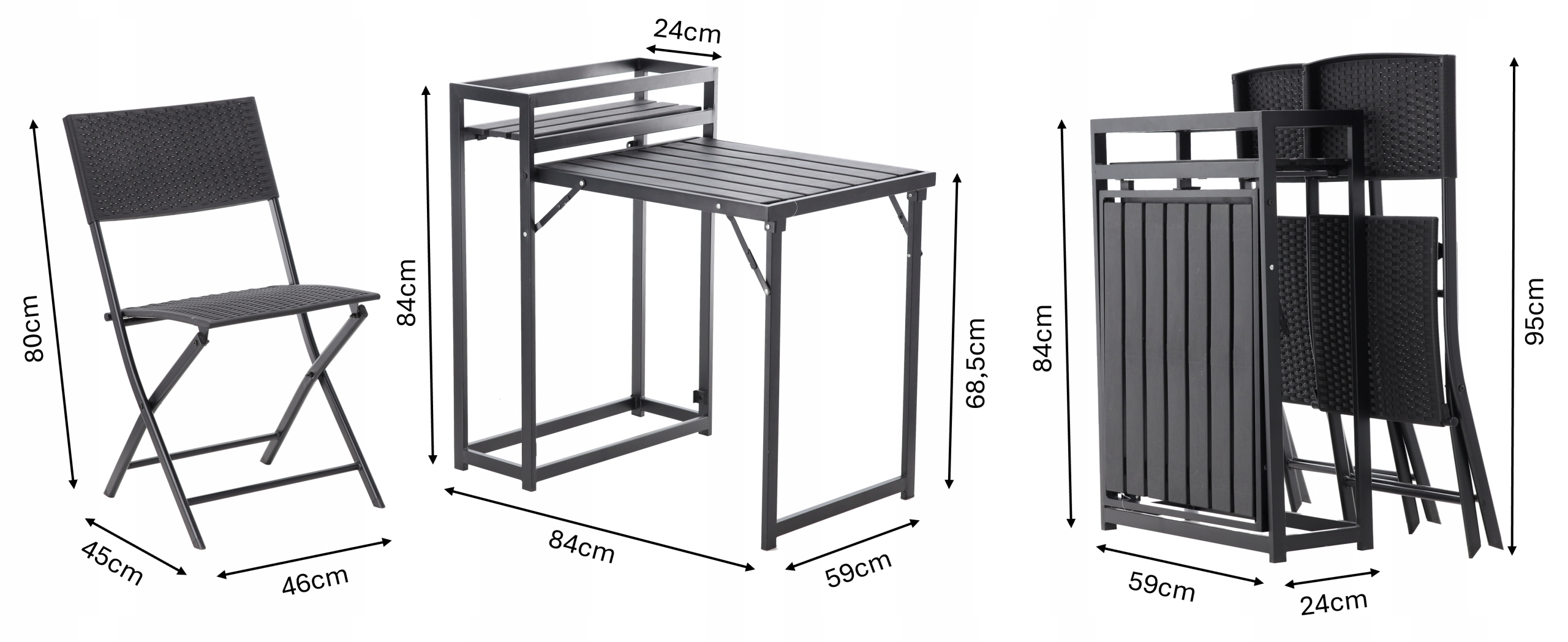 Setul nostru de mobilier de balcon nu este doar un plus elegant, ci si o solutie practica pentru spatiul tau exterior . Az összecsukható elemeknek köszönhetően az elrendezést könnyedén az igényeidhez igazíthatod – függetlenül az erkély vagy terasz méretétől.