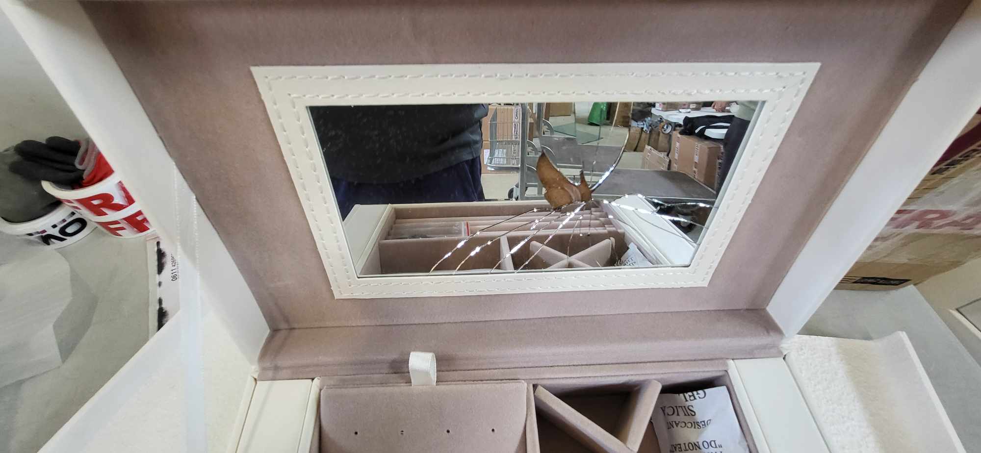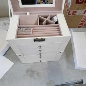 „RESIGILAT: SONGMICS Cutie de bijuterii cu 6 nivele, 5 sertare, oglinda si incuietoare, spatiu pentru ceasuri, 26x15x32cm, alb” értékelése elsőként