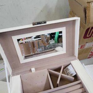 Calitate si durabilitate: Suprafete netede din PU, corp solid din MDF, captuseala din catifea moale, cusaturi ingrijite – acest organizator de bijuterii cu incuietoare este robust si durabil pentru a va insoti multi ani de acum incolo.