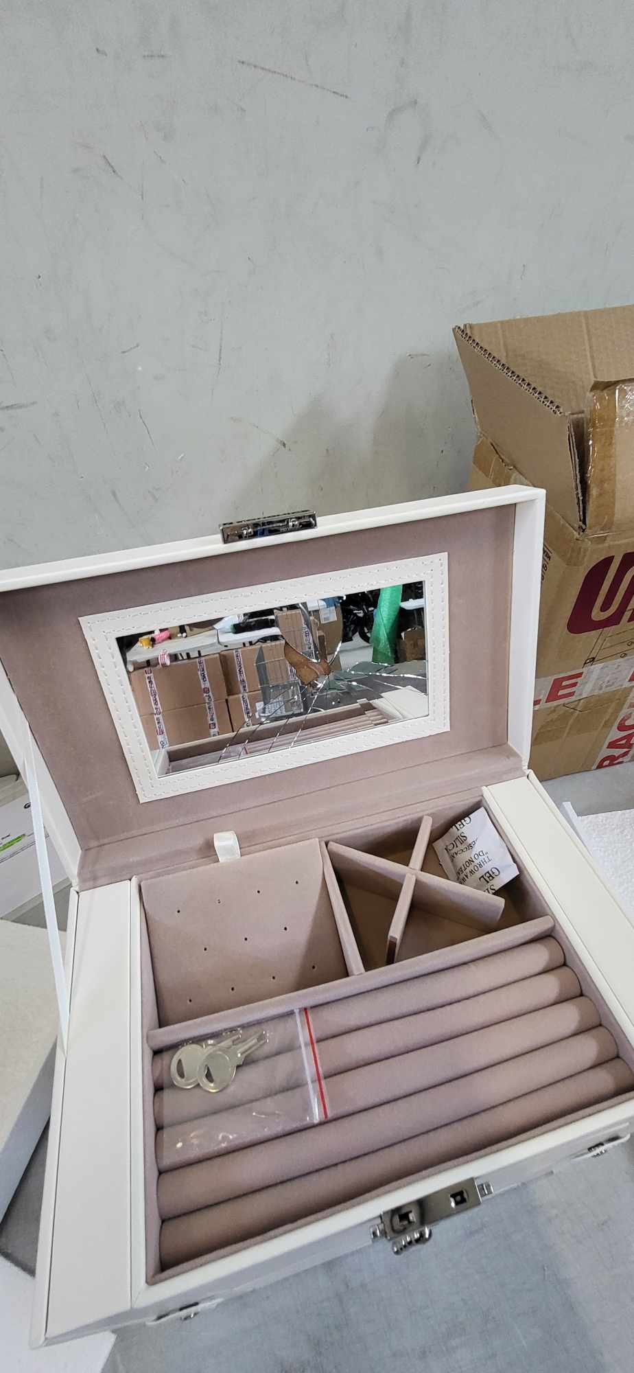 Cu oglinda interioara si incuietoare: Suportul pentru bijuterii are o oglinda in interior care va permite sa va machiati si sa va verificati cu usurinta aspectul, economisind timp pretios de dimineata; are o incuietoare cu 2 chei pentru a va tine obiectele de valoare departe de copiii obraznici.