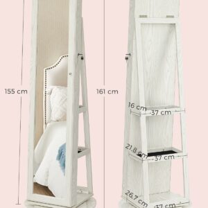 RESIGILAT: SONGMICS Oglinda de podea cu suport rotativ la 360°, cu spatiu de depozitare, 55x55x161cm, alb cenusiu