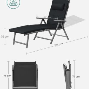 Újrazárva: SONGMICS Összecsukható heverő, vastag matraccal és fejtámlával, állítható háttámlával, maximum 150kg, 183x60x39cm, fekete