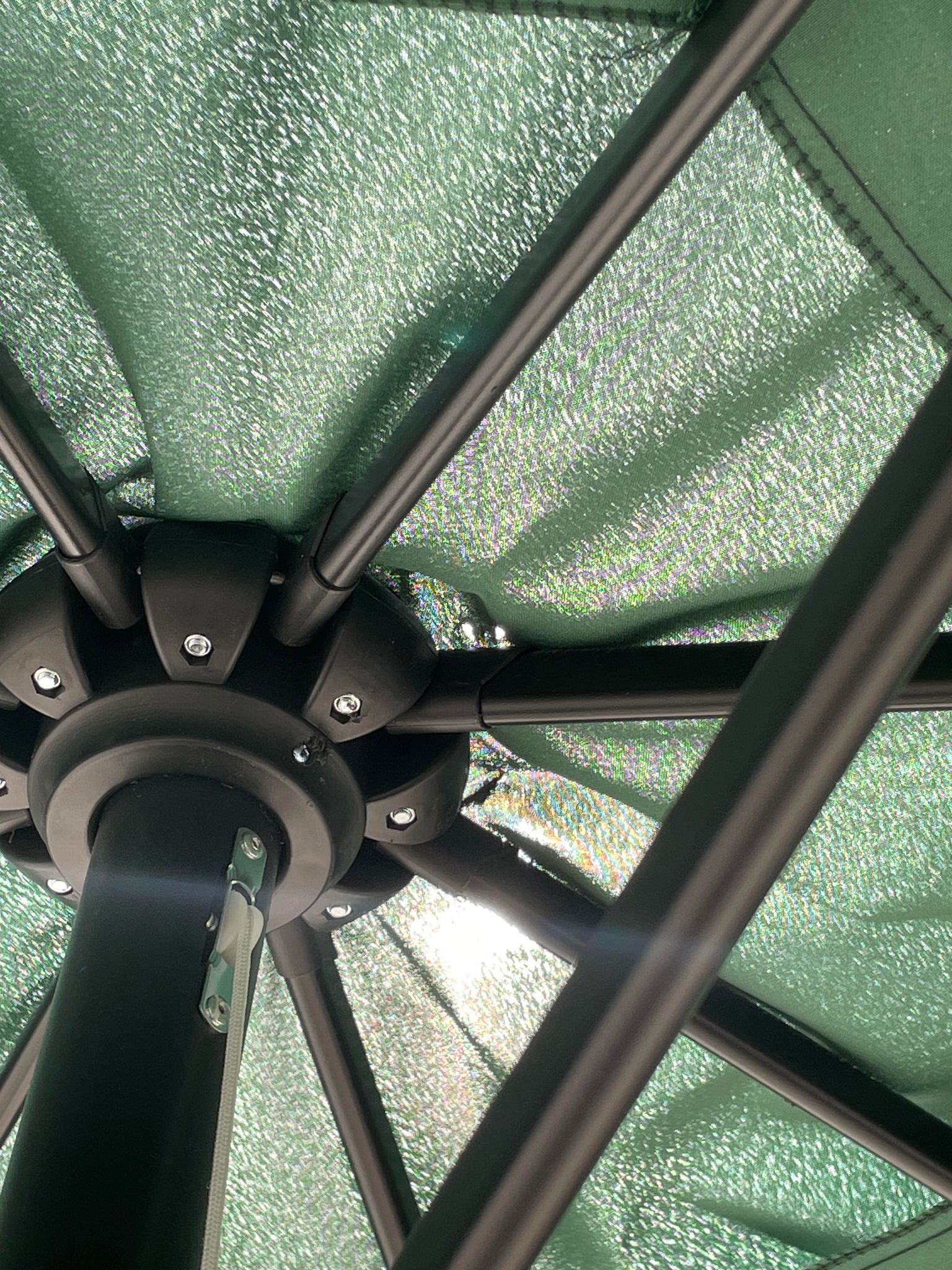 Starea la adapost de soare – fie ca este vorba de o umbrela sau de o panza – poate fi asociata cu un plus de caldura si cu lipsa de circulatie in zilele fara vant. Umbrela noastra a fost dotata cu o ventilatie in partea superioara a baldachinului, ceea ce va creste cu siguranta confortul de utilizare, mai ales daca cei mici se joaca sub umbrela.