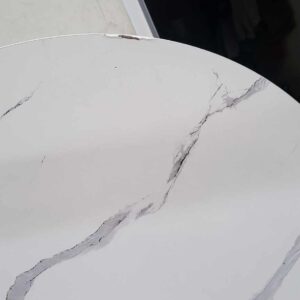 Stil modern minimalist: blat de masa din marmura alba, raft luminos din sticla securizata dedesubt si picioare elegante din otel negru – totul este o potrivire perfecta conceputa pentru viata ta rafinata.