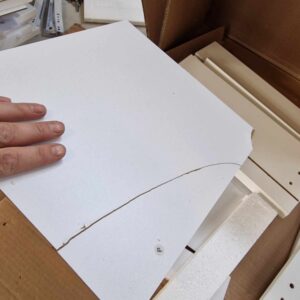 Az asztal 15 mm vastag agglomerált lapokból készült és rendkívül stabil, használat közben nem remeg. Összesen 110 kg súlyt bír el. Kövesse az utasításokat, és szerelje össze a megjelölt részeket – az éjjeliszekrény gyorsan és egyszerűen összeállítható.
