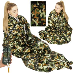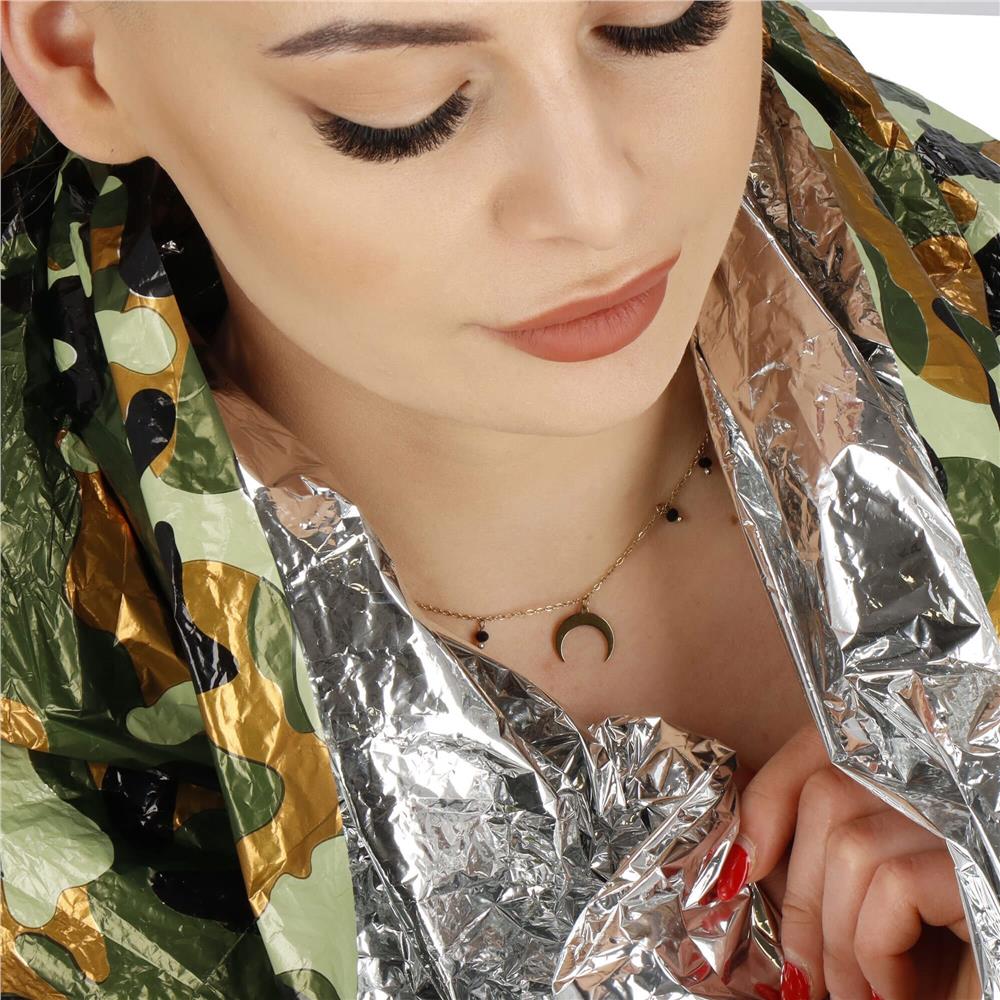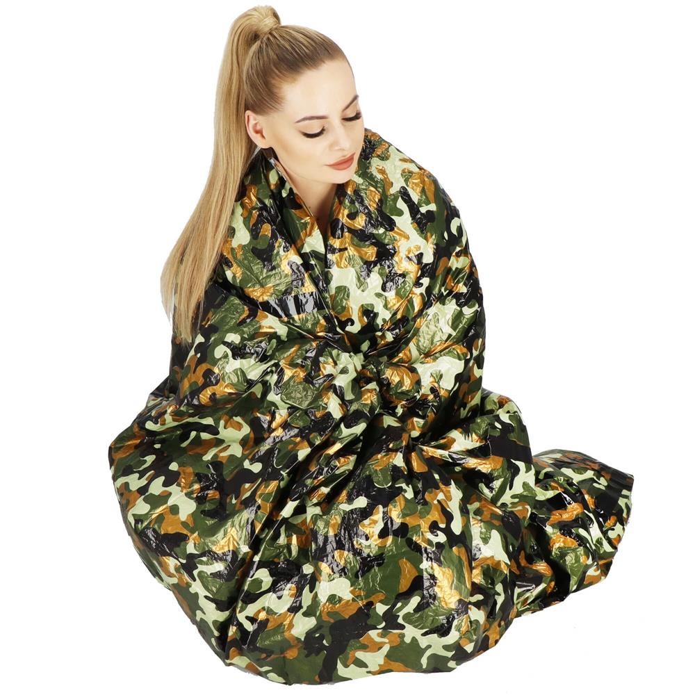 Fabricat dintr-un strat puternic de aluminiu, care este excelent la colectarea si retinerea caldurii, garantand o imbunatatire imediata a confortului termic. In acelasi timp, este un sac de dormit impermeabil – deci va protejeaza de ploaie sau de iarba umeda.