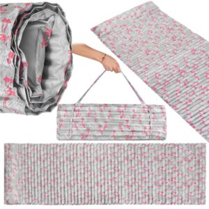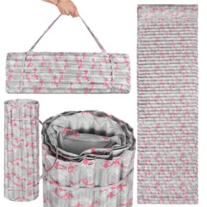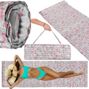 Összecsukható strandmatrac, habszivacs, ultrakönnyű, párnával és fogantyúval, 60x180cm, rózsaszín flamingó szürke