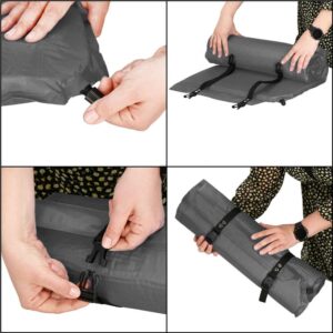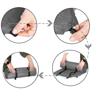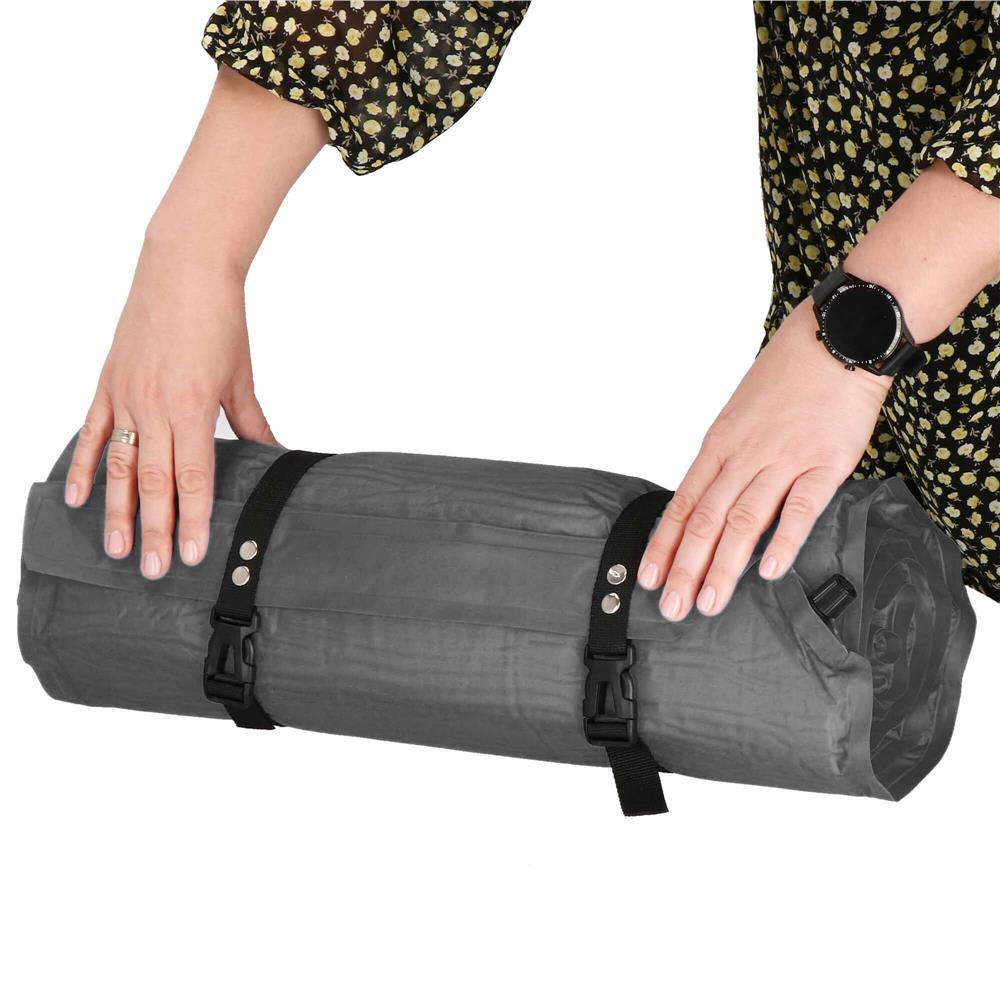 Dupa ce nu mai aveti nevoie de saltea, desfaceti surubul supapei si rulati lent salteaua astfel incat sa se elimine tot aerul. Apoi fixati-o cu curelele incluse si e gata pentru transport.