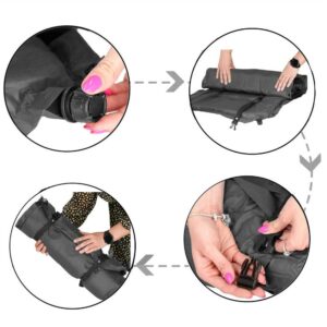 A felhasznált poliészter anyag önmagában nagyon ellenáll a foltoknak. Ha meg kell tisztítani a terméket, enyhén törölje le egy nedves mikroszálas kendővel. Ne felejtse el jól megszárítani a szőnyeget árnyékos helyen, mielőtt újra feltekerné.