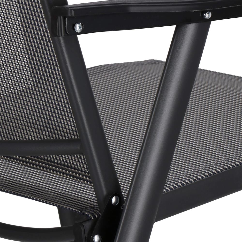 A szék ülőfelülete olyan szövetből készült, melyre elsősorban az a jellemző, hogy nem melegszik fel és nem szívja fel a nedvességet. Érdemes megjegyezni, hogy ez a szövet környezetbarát, és a változó időjárási viszonyok nem veszítik el tulajdonságait vagy színét. Magas rugalmassága kényelmes pihenést garantál a szabad levegőn.