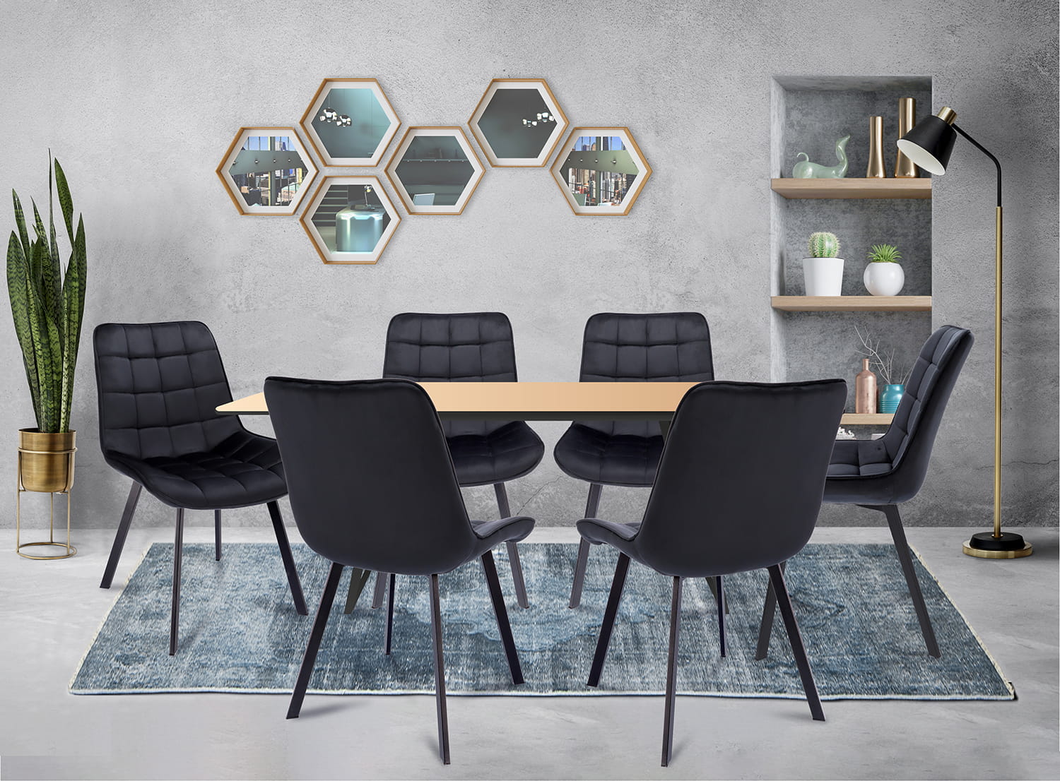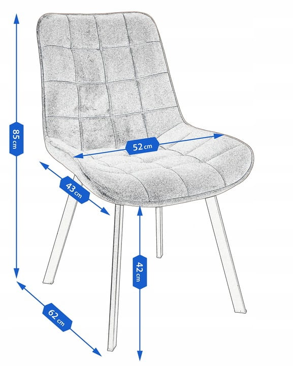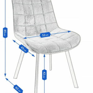 Se distinge printr-un sezut de catifea moale, matlasat, care imbratiseaza corpul. Tesatura este delicata la atingere. Picioarele inalte si solide din metal sunt responsabile de stabilitatea perfecta si de rezistenta in timp.