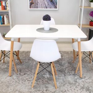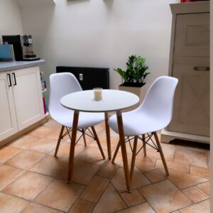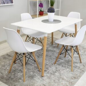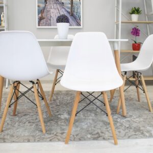 A szék a legmegfelelőbb anyagokból készült, amelyek tökéletesen illeszkednek a nappaliba vagy a konyhába. Először is a szék nagyon könnyen tisztítható, gond nélkül megszabadulsz a nehezebb szennyeződésektől. A lábak alsó részére műanyag végeket helyeztek, hogy megvédjék a fát a padlóval való érintkezéstől. Nem kell aggódnia a láb esetleges benedvesedése miatt, ami hatással lehet rá. Ezenkívül a lábak között drótkötések találhatók, amelyek nemcsak nagyon jól néznek ki, hanem az egész szerkezetet is alátámasztják.